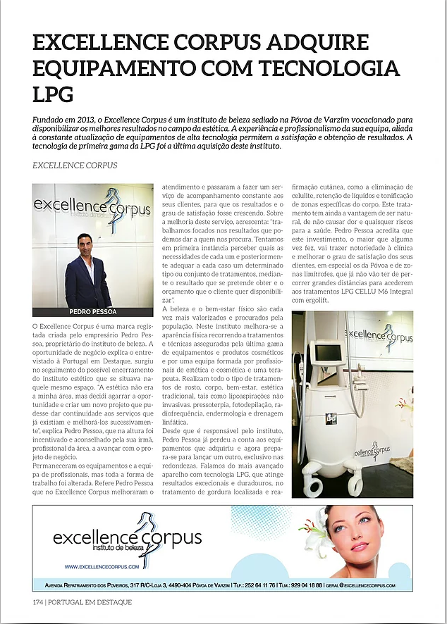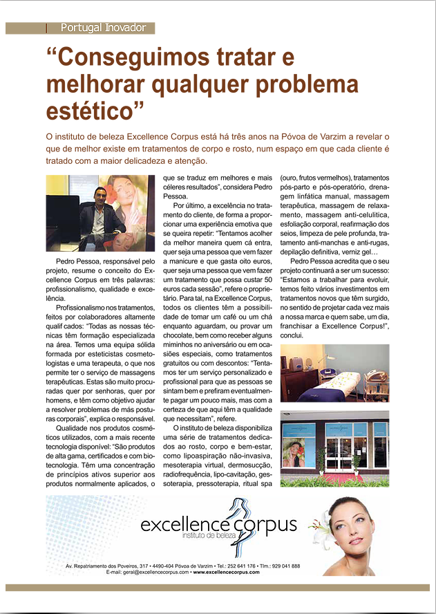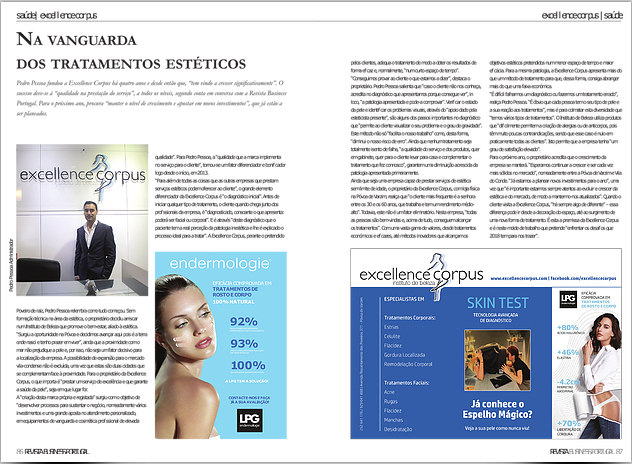 A Excellence Corpus foi mais uma vez escolhida por uma revista nacional para representar a atividade dos Institutos de Beleza em Portugal.